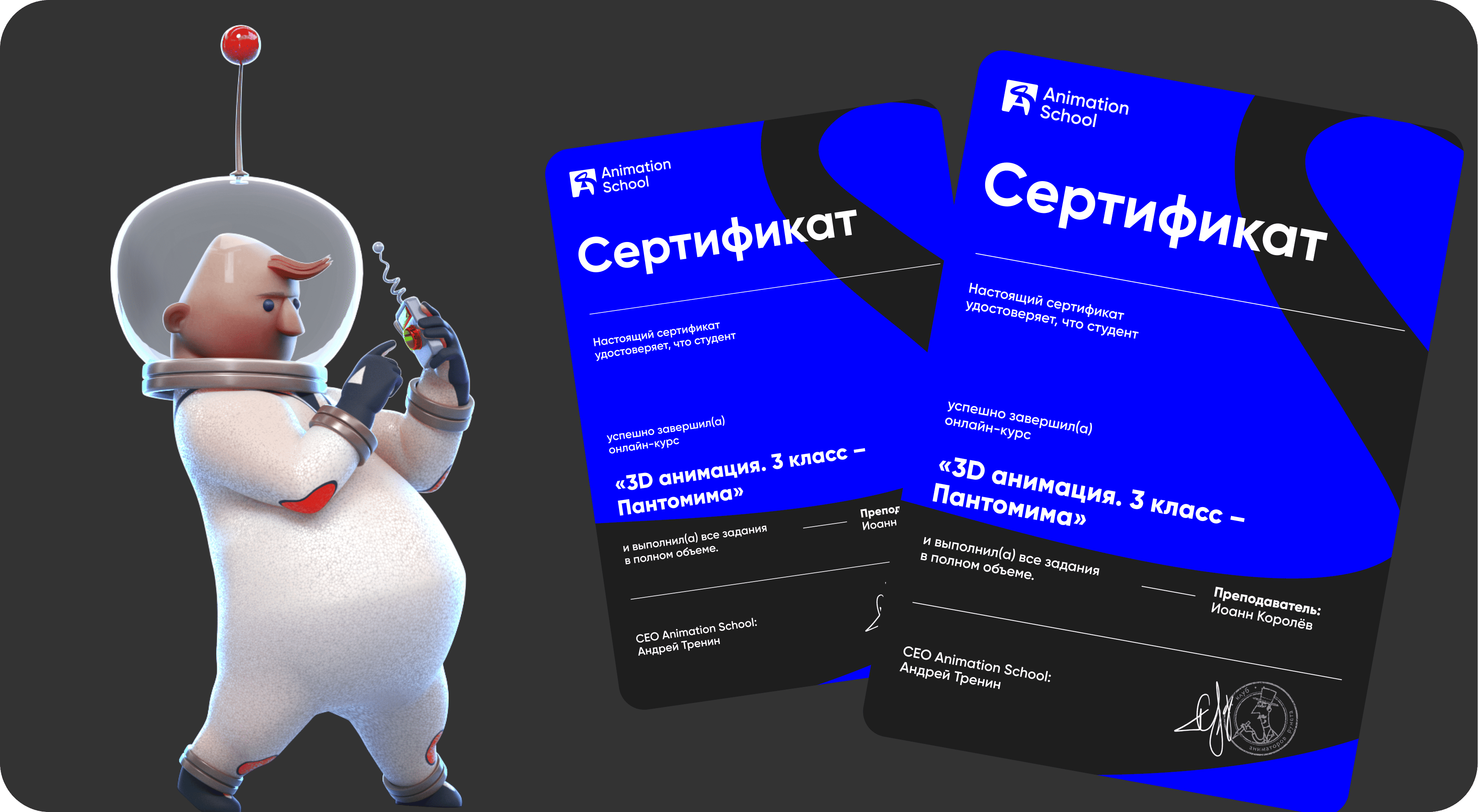 Завершил курс «3D анимация. 3 класс – Пантомима»